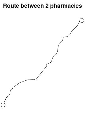 plot(st_geometry(route), main = "Route between 2 pharmacies")