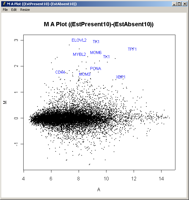 affylmGUI is a Graphical User Interface for analysis of Affymetrix microarray data, using Gordon Smyth's limma package (Linear Modes for MicroArray data). limma and affylmGUI are both R packages. The limma package offers R users a command-line interface to state-of-the-art techniques for linear modelling of microarray data and for identifying differentially expressed genes. The affylmGUI package, while not as powerful as limma to the expert user, offers a simple point-and-click interface to many of the commonly-used limma and affy functions. To use the affylmGUI package, you need to have R 1.8.1 or later, Tcl/Tk 8.3 or later (ActiveTcl for Windows/Linux or Fink Tcl/Tk for MacOSX (X11)) and the limma, affylmGUI, tkrplot R packages. The affyPLM (Bioconductor), R2HTML (CRAN) and xtable (CRAN) packages are recommended. The limma and affyPLM packages are available on Bioconductor, the affylmGUI package is available here, and the other packages are available from CRAN. affylmGUI has been succesfully tested on Windows 2000, Windows XP, and Red Hat Linux, and on Mac OSX with X11.
