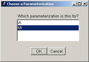 Once the linear model has been fitted, the Parameterizations drill-down box shows the Mt parameterization within linear model fit "Available".