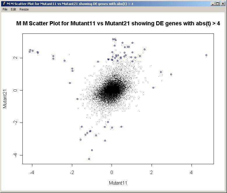 The M (Mutant11) vs M (Mutant21) scatter plot is shown below.