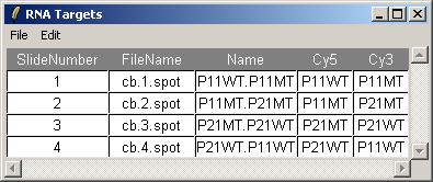 Click on "View RNA Targets" in the "RNA Targets" menu. The RNA targets for this data set are displayed below.